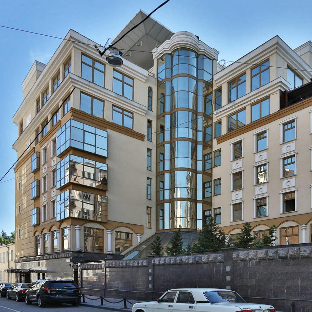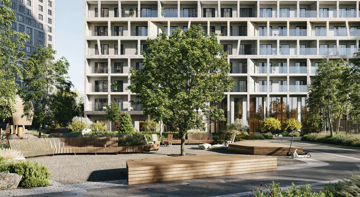 На первом этаже комплекса расположено лобби с консьерж-сервисом, которому можно поручить любой бытовой вопрос. За безопасностью жителей следит профессиональная охрана. На ухоженном зеленом дворике высажены деревья и кустарники, проложены прогулочные дорожки, для юных резидентов оборудована площадка для игр. В подземном паркинге предусмотрено 94 машиноместа.